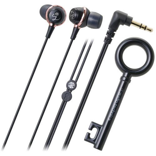 -. Feature : Black in-ear headphones with rhinestone / Embellished with rhinestone detailing, elegant calligraphy / Comes with a chic key-shaped cable wrap / 8.8mm drivers deliver crystal-clear, high-performance audio / Compact design for long-wearing comfort