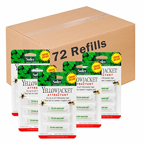 The Safer Brand Deluxe Yellow Jacket/Wasp Trap Bait lures yellow jackets and wasps to the trap, ultimately trapping them. This bait is pesticide-free.