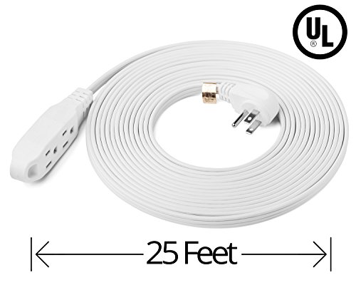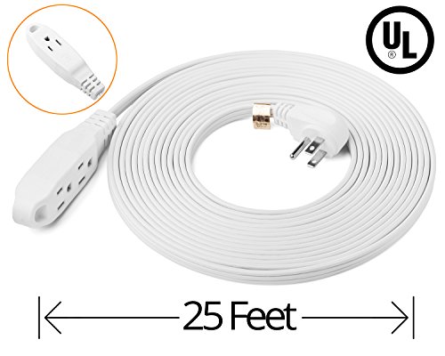 ClearMax 25 Feet 3 Outlet Extension Cord 16AWG Indoor / Outdoor Use - White - UL Listed