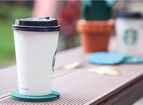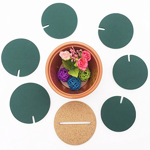 ✔Package: This coasters set includes 6 round green coasters, 1 pot and 1 cork holder. 6 different size coasters help you get the perfect size for your cup, bottle or glass.