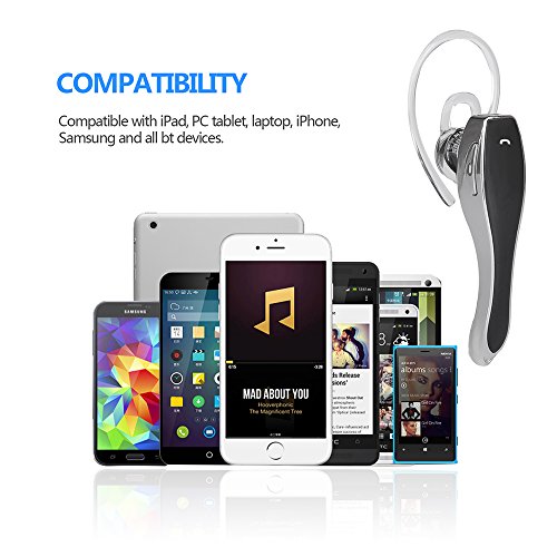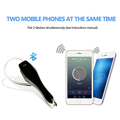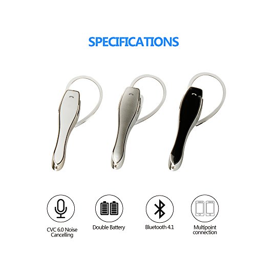 -. Feature : Design: Ergonomic design, slim, lightweight and comfortable to wear. Unique style with hook that can be used on coat pockets or any shirt button. / Features: Pair 2 devices simultaneously (see instructions manual). Separate personal / business calls. Listen to music. Camera function. Built in mic for noise-reduction in background for clearer calls. Voice prompt. / Specifications: V4.1 with up to 10 metres transmission distance. Talk time 4 hours, standby time 160 hours. Charging time ¨C 2 hours. Support A2DP 1.2 / AVRCP 1.3 / HFP 1.5. / Compatibility: Universal Bluetooth stereo headset V4.1 with camera, talking and music function. Easy and fast pairing. Compatible with iPad, PC tablet, laptop, iPhone, Samsung and all bt devices. / Usage: Great for personal and especially business users with simple touch functions. Great for work, play or driving. Come with full 1 year warranty.