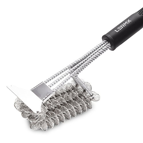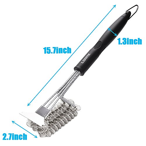 Bristle Free Barbecue Grill Brush & BBQ Cleaning Scraper【Updated Version】, LERMX Rust Resistant Stainless Steel Barbecue Brush Cleaner with Triple Scrubber and Scraper, 100% Safe For all Grill Grates