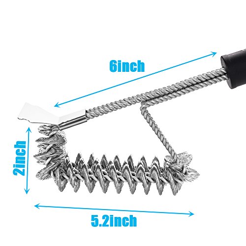- 【Triple Scrubber 360°Rotation】 It is made with triple stainless steel twisted wires, hard enough, strong enough, 3 in 1 Unique brushes design, the 3 branches which can tightly bundle the 3 torsion wire to prevent them from cracking, and it can 360 degree clean your bbq grill.