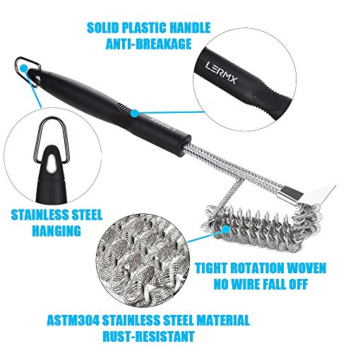 - 【Bristle Free Grill Brush】Different from traditional barbecue(BBQ) brush, this grill brush was made of stainless steel wire, 100% no bristles to wear down or fall off, No sharp edges, Free risk to your healthy! LERMX made it.