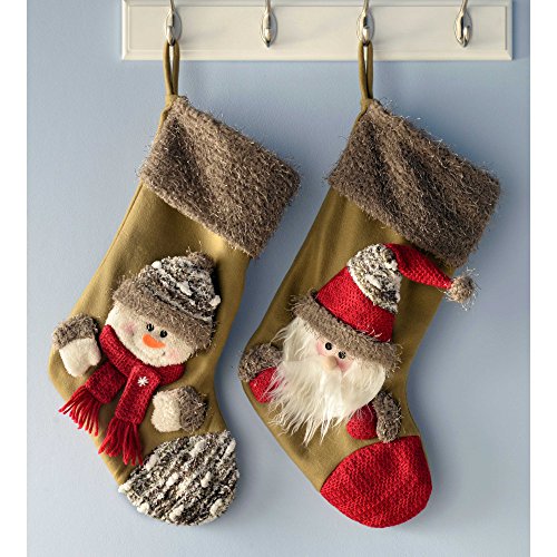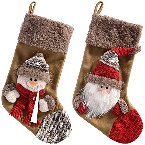 WeRChristmas Santa And Snowman Christmas Stocking Decoration, 48 Cm - Brown, Set Of 2