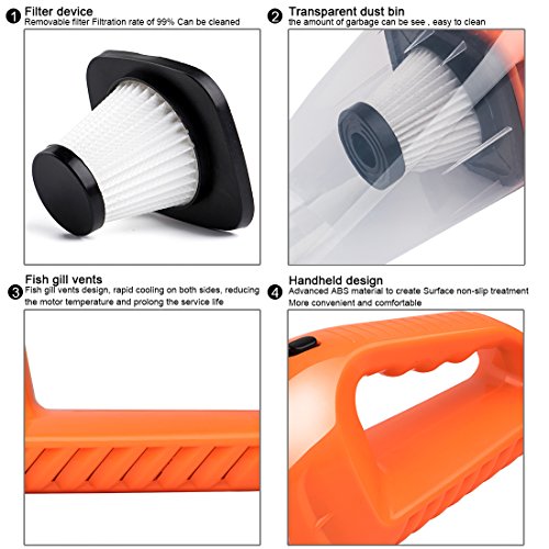 CandyFouse car vacuum adopts DC 12V motor drive can effectively clean the dust inside the car.Its extended mouth and 16.4FT(5M) power cord can clean all corners of your car; With brush which can thoroughly clean your car,committed to create a clean and healthy car environment for you.