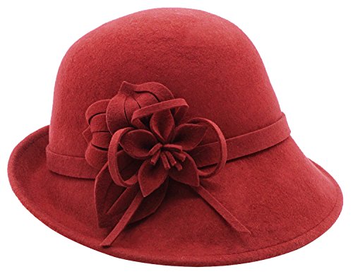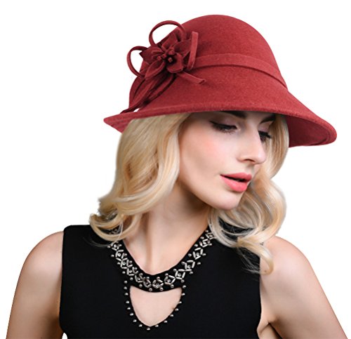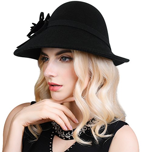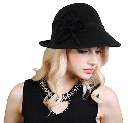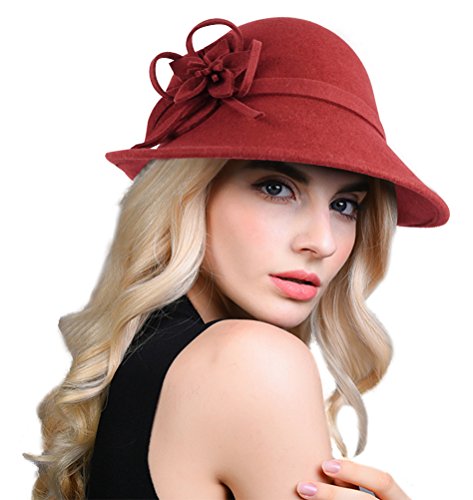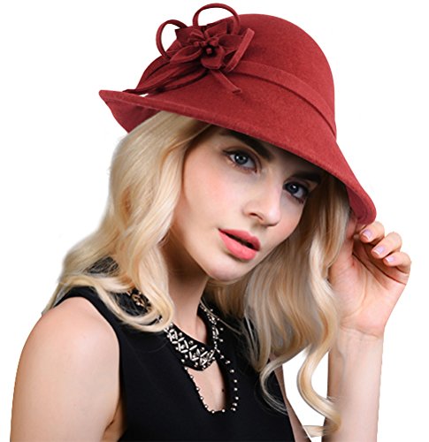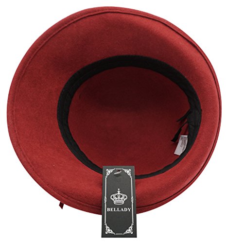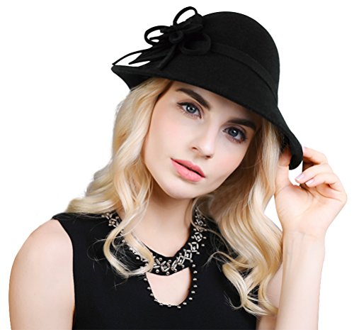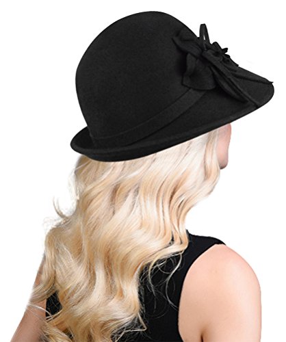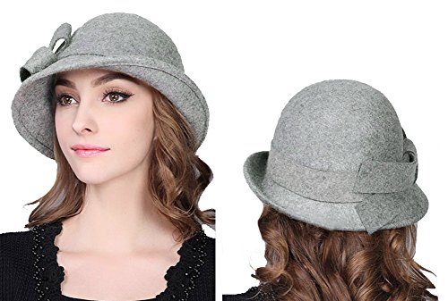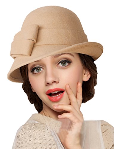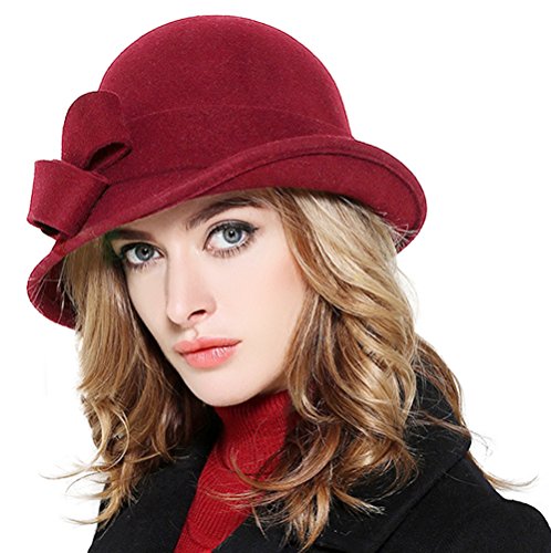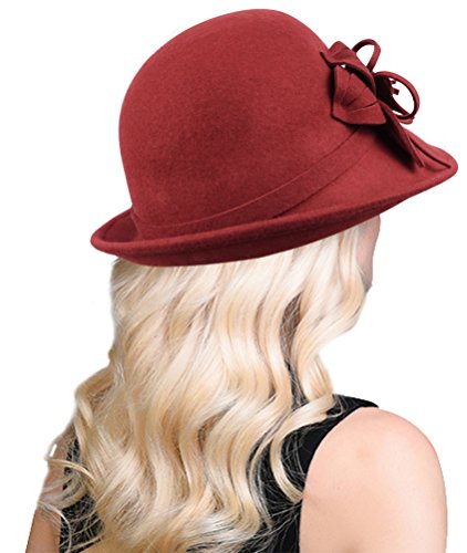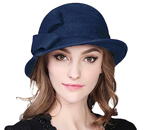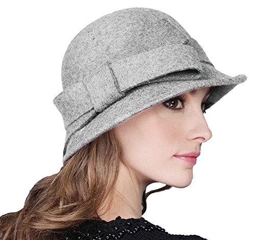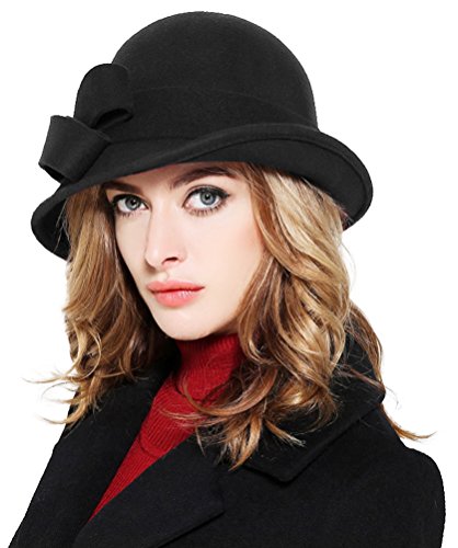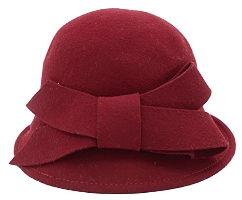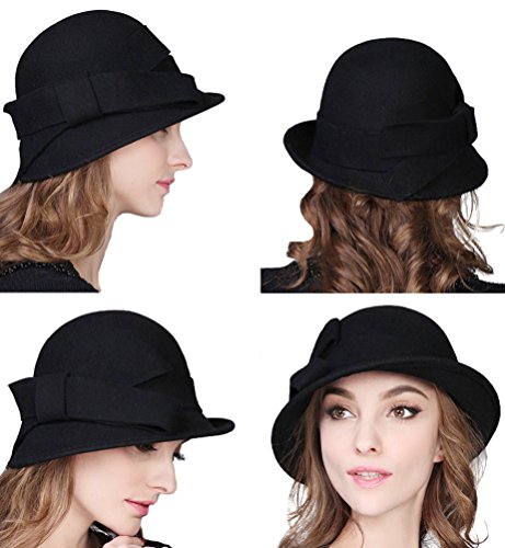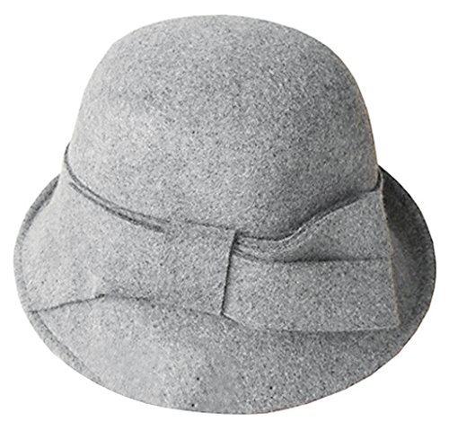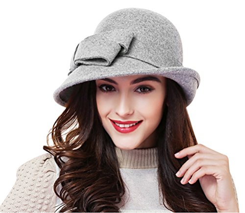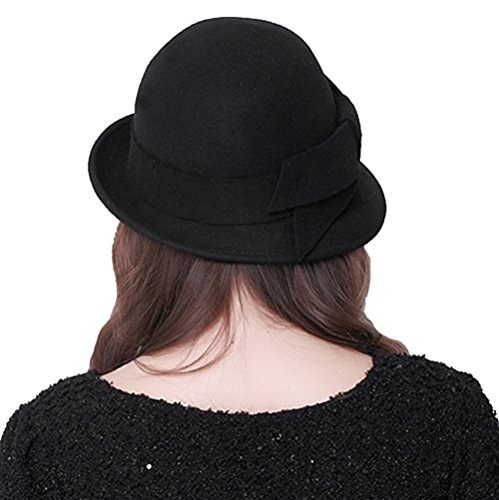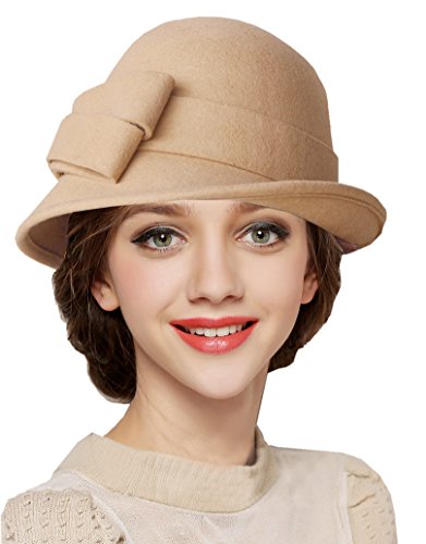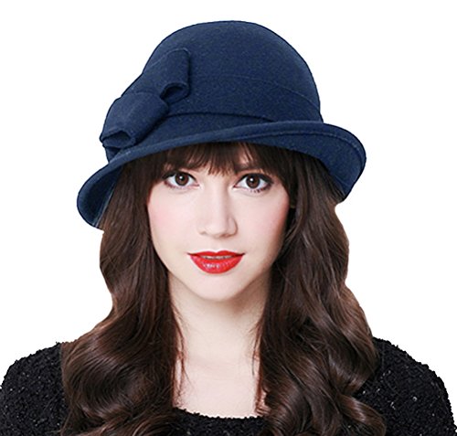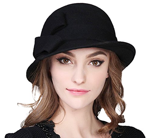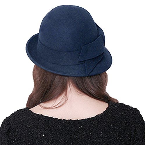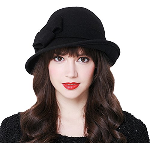 Bellady Women Solid Color Winter Hat 100% Wool Cloche Bucket With Bow Accent