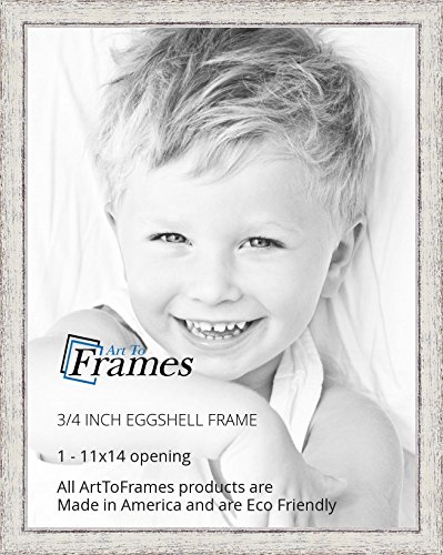ArtToFrames 11x14 inch Eggshell Rustic Barnwood Wood Picture Frame, WOM0066-1343-YWHT-11x14