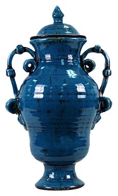 UTC 76121 Turquoise Ceramic Urn with Lid with Rustic Finish