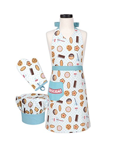 - Child's apron features delightful and enticing milk and cookies pattern perfect for the chef with a sweet tooth 100% cotton, machine-washable. 22" W x 25" L