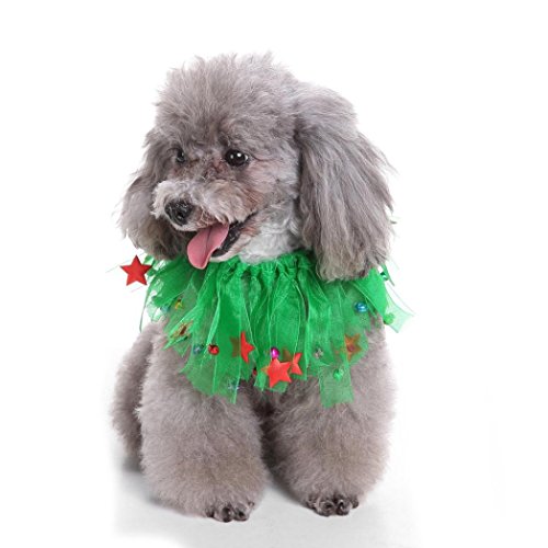 (Pulison(TM))/Pet Supplies/Flea Tick Control/DIRECT FROM USA/Pulison(TM)Cute Christmas Wreath Jingle Bell And Stars Decorative Dog Collars (L, Green)