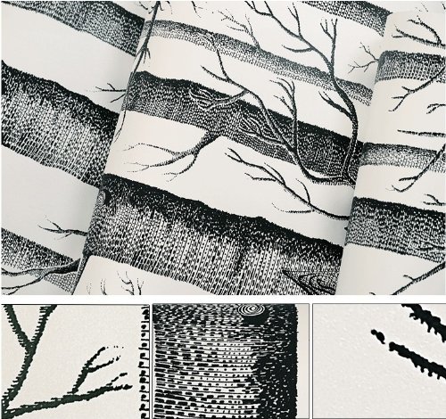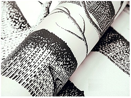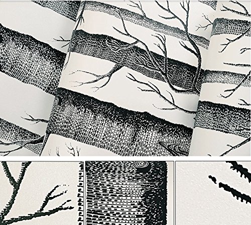 -. Title : Modern Minimalist Tree Pattern Non-woven Wallpaper Roll Black & White Color 0.53m(20.8")10m(32.8')=5.3SQM(57sqfeet)