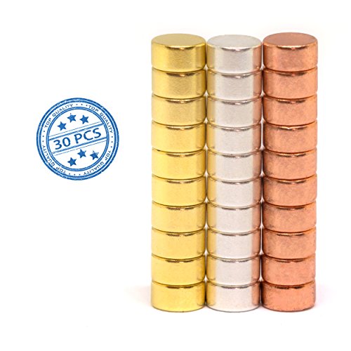Round Colored Refrigerator Magnets | Office Magnets | Kitchen Magnets 30 Pack (Gold, Silver, Copper Plated)