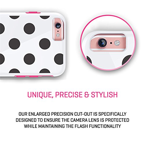 iPhone 6 6s Case 4.7", True Color® Black Medium Polka Dots Printed on White Hybrid Cover Hard + Soft Slim Thin Durable Protective Shockproof TPU Bumper Cover - Hot Pink Bumper