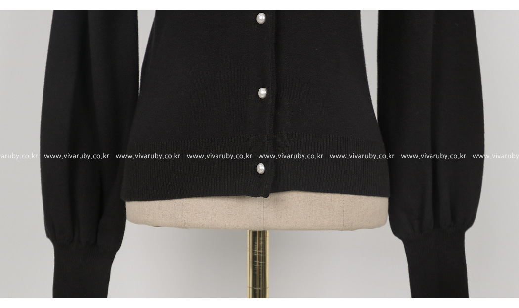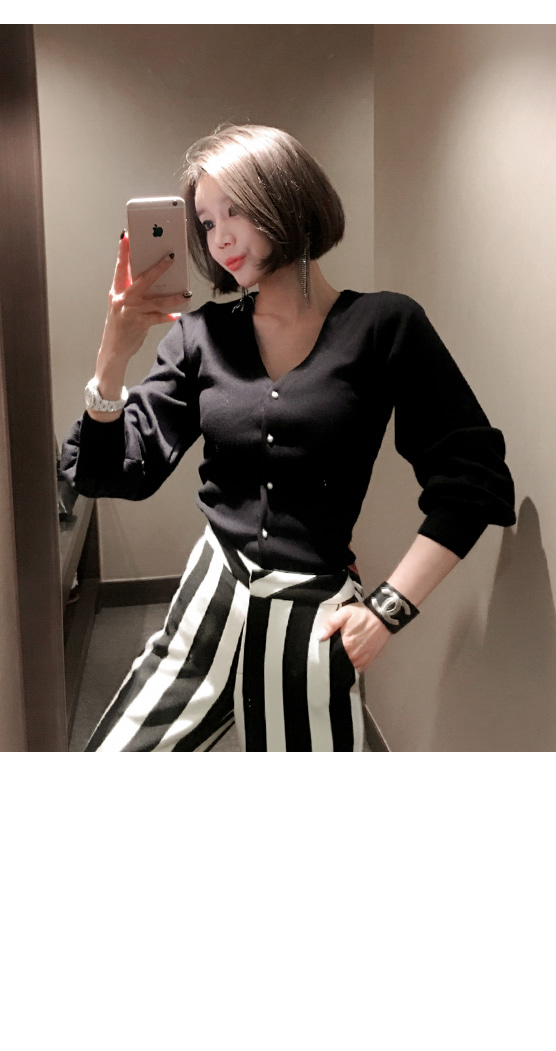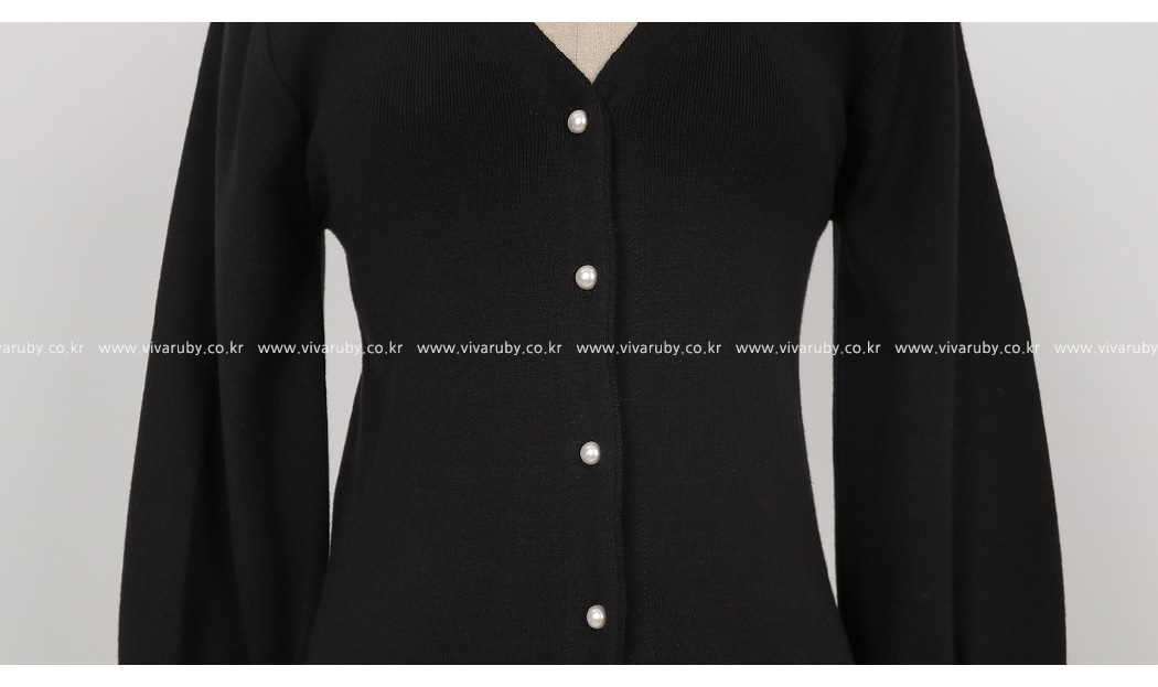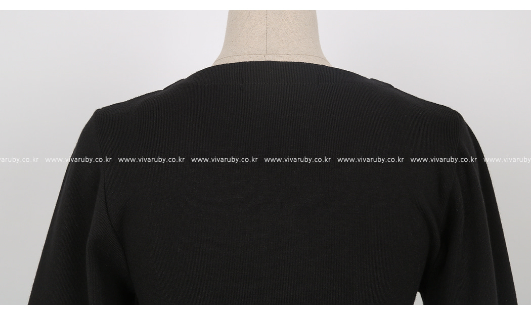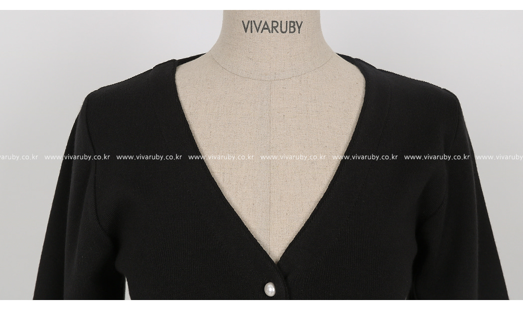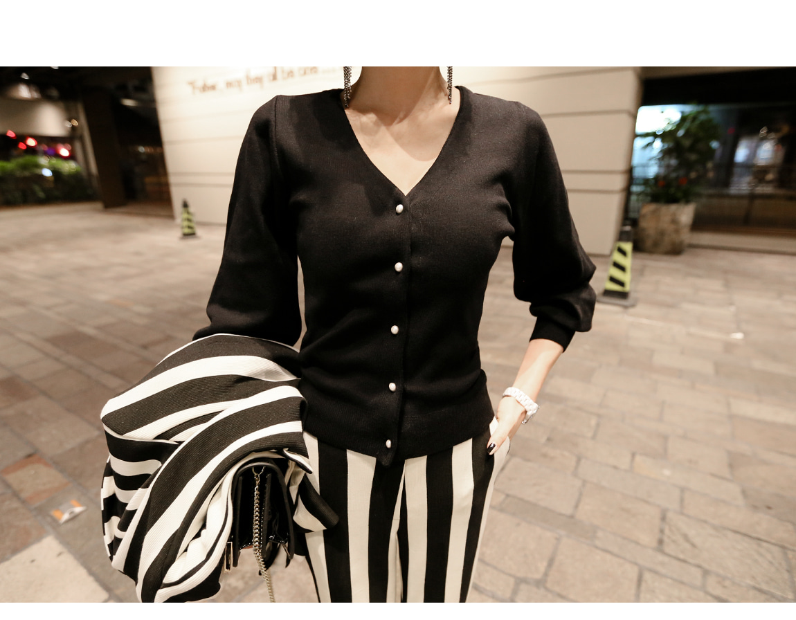 シンプルなV衿ぐりに晋州ボタンでポイントを与え、