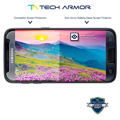 Preserve your resale value- Tech Armor is the affordable way to protect your Galaxy S7 screen from scratches, drops, dust and daily wear and tear. The Ballistic Glass Screen Protector provides TruTouch Flawless Touchscreen Accuracy, and is made from the highest quality precision laser cut tempered glass with polished, rounded edges and 99.99% HD Clarity. Bubble-free, easy install, and perfect fit, guaranteed by the Tech Armor No-Hassle Lifetime Replacement Warranty.