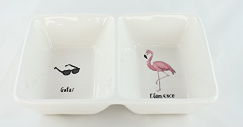 Rae Dunn Magenta Ceramic Double Dish Gafas and Flamenco - Sunglasses and Flamingo