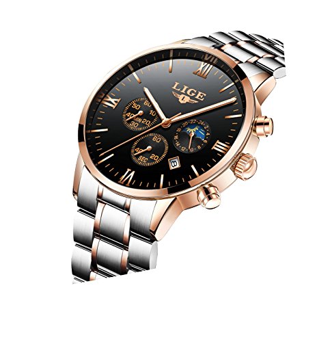 -. Feature : Material: High hardness mineral glass (Key scratch resistant),stainless steel case back,compressive and abrasion resistance. / WATERPROOF for 30M: Hand Wash, Rain Day, Sweating, NO Problem. In general, withstands splashes or brief immersion in water, but not suitable for swimming. (Please DONOT PULL OUT the button under water) / Movement: Japanese Quartz Original Movement, Precise Japan quartz movement. / WATCH FUNCTION: Full Functional Chronograph, 30M waterproof and Date Display / Gifts: The watch is suitable for every occasion (outdoor, business, party), A Fashion Birthday, Christmas, Valentine day, Wedding, New Year Gift also a great gift for family and friends.
