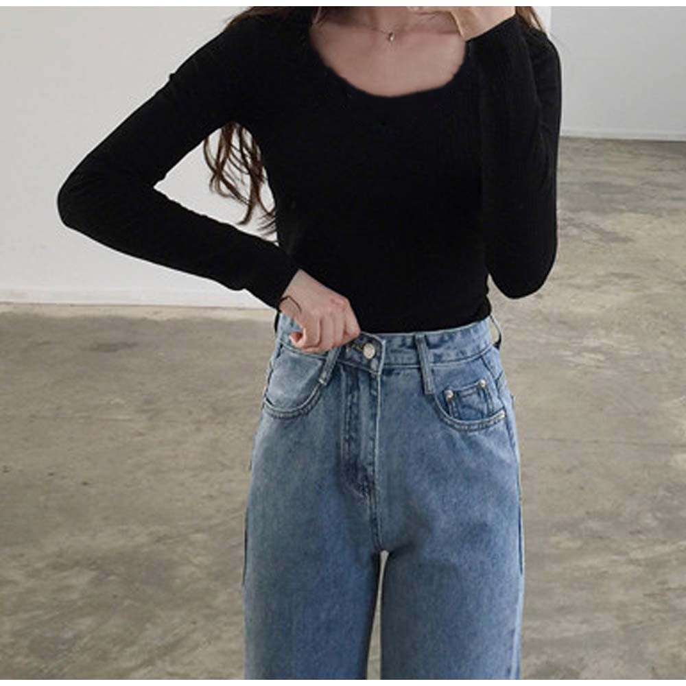 ざっくり開いた首元で大人な抜け感をプラス、セクシーなのに上品さもあるベーシックなデザイン