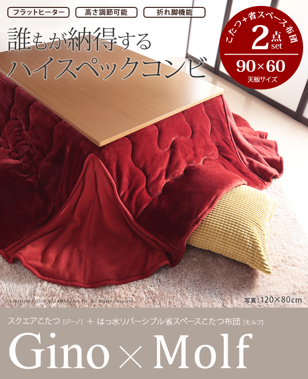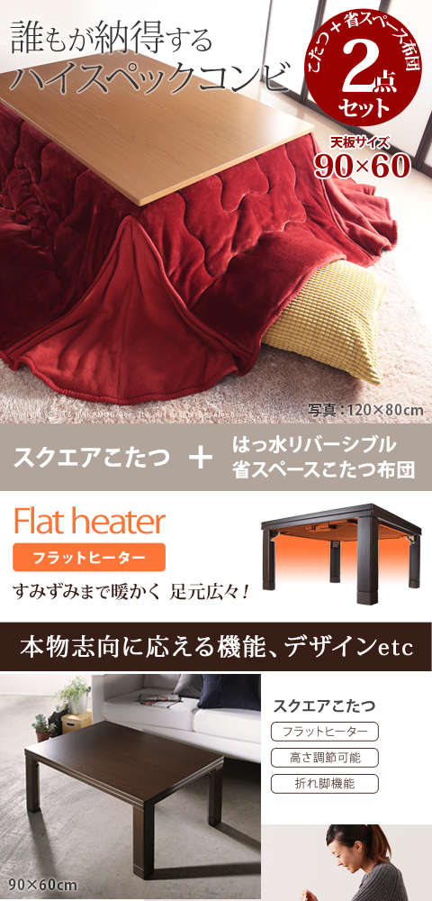 ●サイズ:こたつ-幅90x奥行60x高さ40cm(35+継ぎ脚5cm)・約15.5kg、布団-200x170cm・中綿量約730g
