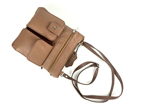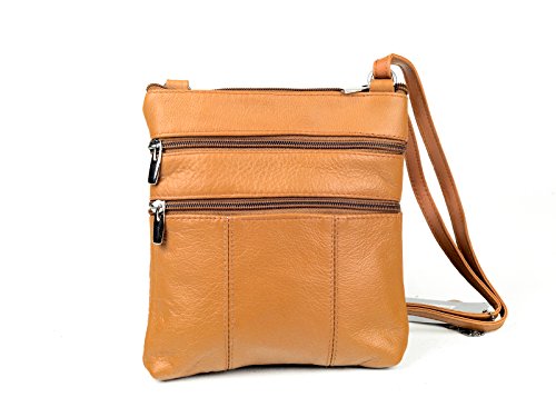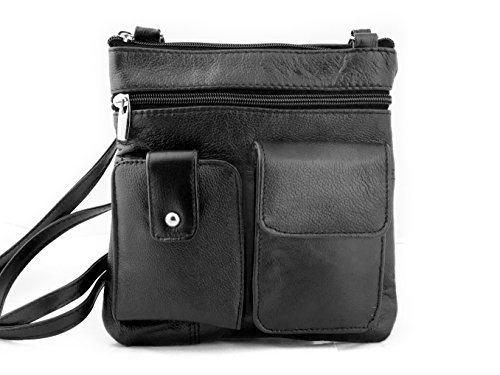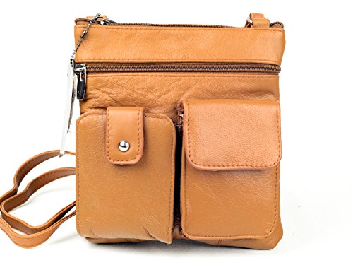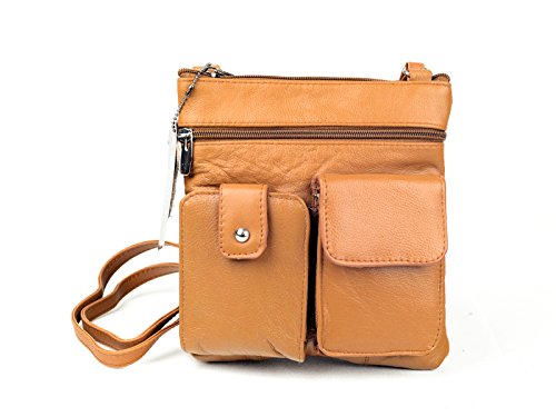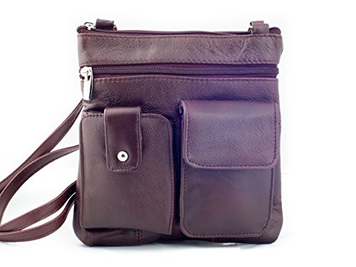 Meticulously crafted genuine lambskin leather crossbody bag has an abundance of organizational pockets, This stylish cross body bags is the perfect everyday travel purse. At 8.5" tall x 7.8" wide, it is a small size it is easy to carry around. Yet with 4 assorted sized zippered pockets to hold all of your things. 1 front and 2 back pockets are handy for quick access to your cash, lip gloss and keys while an adjustable strap allows easy transitions from shoulder to crossbody styles. Also tow new front compartment especially designed to hold phones and wallets.Feature