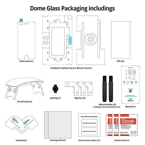 -. Feature : LIQUID DISPERSION TECHNOLOGY: Our patented liquid glass evenly disperses over your entire screen, including existing scratches and scuffs, and hardens to create an impenetrable edge to edge barrier while repairing former cracks and imperfections. / BEST COVERAGE: This Dome Glass protector is #1 in protecting your entire iPhone 7 or iPhone 8 screen. Other competitors don't cover the rounded edges, which increases your risk of permanent damage by 15% / BUBBLE-FREE INSTALLATION KIT: To prevent errors and air bubbles, our install frame and UV curing light are included with purchase. Quality is reflected through commitment, so make sure you have enough time and patience to get an undeniably perfect result. / Designed in California - Samsung Mobile Accessory Partnership Program (SMAPP) Member - Patented in US, EU, KR, JP, CN and TW / LIMITED LIFETIME WARRANTY - Whitestone provides Limited Lifetime Warranty means that if your Dome Glass is damaged or worn, you could request replacement through Whitestone's webpage.