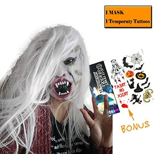 -. Feature : Scary Skull Face Masquerade Mask For Halloween Party Cosplay Costumes; Carniva; Easter; Stage. / Packing Including: One Mask + A Sheet of Temporary Tattoos--Perfect Match. / Easy to See Through, Easy to Breath, Comfortable to Wear. / Material: Made of Eco-Friendly Latex, Durable to Use. / 100% New Product, Premium Quality, If There is Any Quality Problem, We Promise to Replace a New One for You or Return Your Money Back.