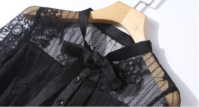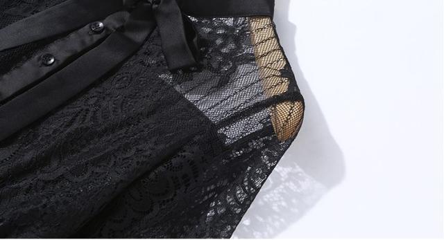 襟のりぼんと袖や裾のスカラップカットレースはファミンニ感アップ。