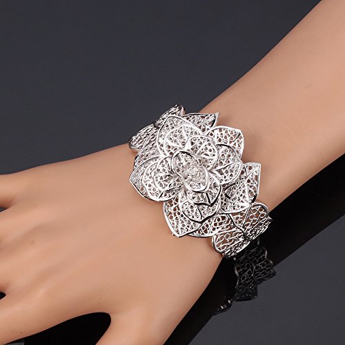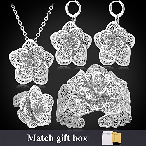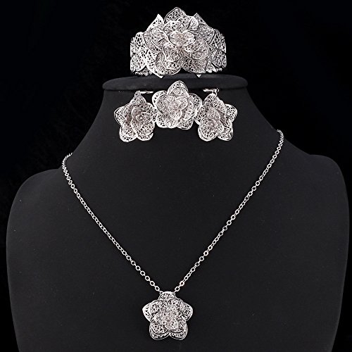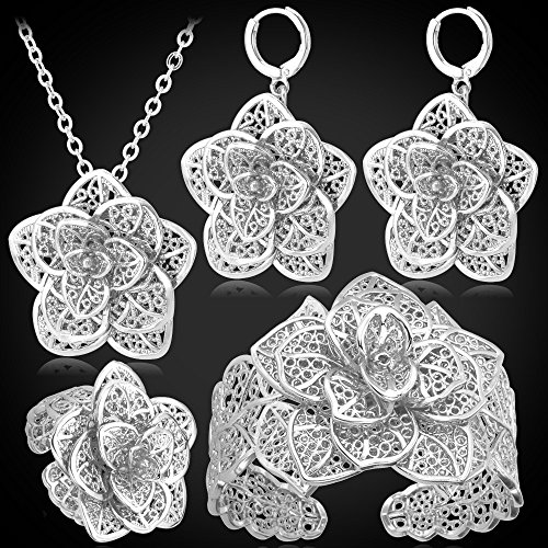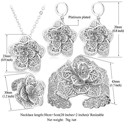 -. Title : 4 Pieces Wedding Jewelry Set Platinum/18K Gold Plated Flower Pendant Necklace, Cuff Bangle Bracelet, Drop Earrings & Ring For Women