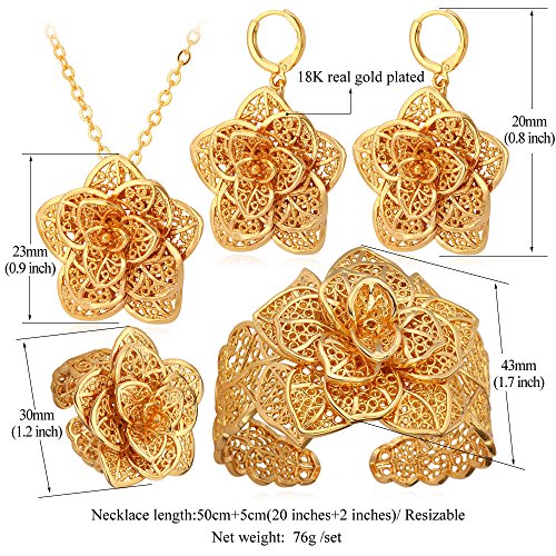 -. Feature : Material: Enviromental Friendly copper, 18k gold plated/platinum plated / Flower shaped. / Pendant: 0.8 inch, chain: 20 inches +2 inches extending chain. / Earrings: 0.8 inch,bracelet diameter: 2.4 inches/adjustable.Ring:adjustable open ring / An excellent gift for anniversaries, graduations, birthdays, or just as a surP.R.Ise to remind that special someone how much you care.