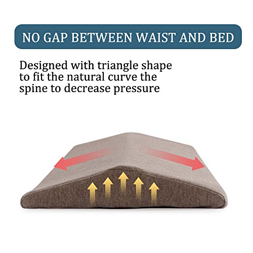 Studio : Mokeydou Publisher : Mokeydou Product Description Special designe Lumbar Support Pillow Designed for lumbar back pain and pregnant women. the pillow works by providing additional support to the thoracic and lumbar curves in the back and side sleeping positions, and helps to keep the spine level in the side sleeping position. stable triangle design,"0" gap joint and evenly dispersed waist pressure, prevent strain of lumbar muscles. Comprehensive protection, supine side sleeping multi-azimuth caress the waist. 0
