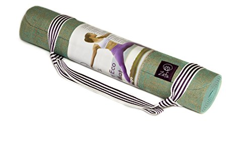- THIS IS ONE OF THE MOST ECOLOGICAL MATS YOU CAN GET: Made from a blend of Natural Jute Fibres (20%) and Eco PVC (80%).Our Zafu Yoga mats have serious Environmentally Friendly credentials, the production facilities are inspected and certified.There are no nasty smells or allergy causing latex and definitely no karma harming toxic chemicals to worry about. Guaranteed.