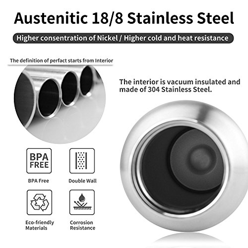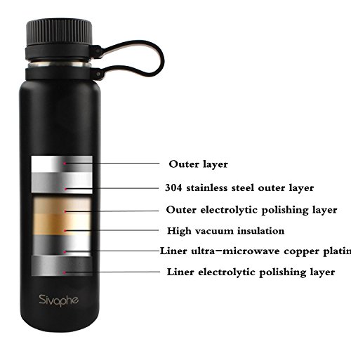 Double Wall Vacuum Insulation: Double Wall water bottle can keeps your beverages ice cold for 24 hours or more and hot for up to 12 hours.