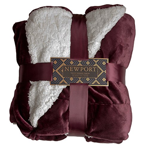 Newport Reversible 50-by-60-inch Velvet Berber Throw, Plum Frost