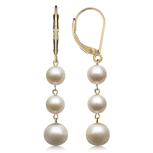 -. Title : 14k Yellow Gold Cultured Freshwater Pearl Trio Dangle Drop Earrings