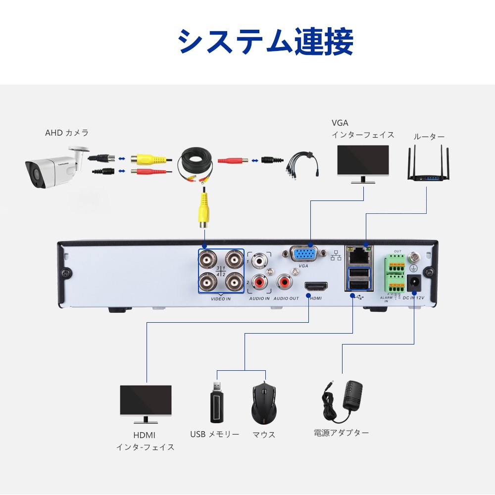 * When connecting the AHD DVR security camera system, it is necessary to prepare PC display / TV, VGA, HDMI cable, WAN router.