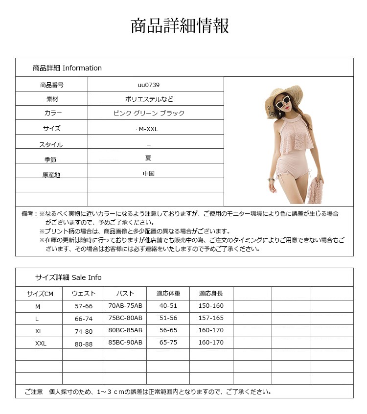XXLバスト102ウェスト80-88適応体重65-75適応身長160-170