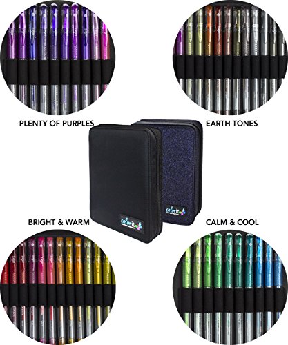 -. Title : ColorIt 96 Gel Pens For Adult Coloring Books - 2 Travel Case Gel Pen Sets with 72 Glitter, 12 Metallic, 12 Neon Plus 96 Matching Colored Gel Ink Refills
