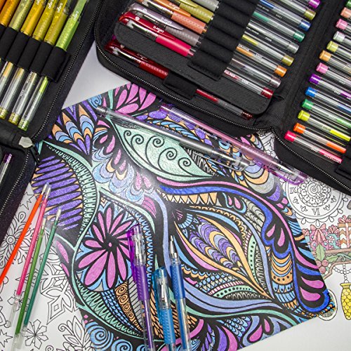 -. Feature : Deluxe 96 Gel Pen Set with Travel Case and 96 Matching Ink Refill Cartridges / 24 Glitter, 12 Metallic, 12 Neon - Original Gel Pen Set and Case + 48 All Glitter Gel Pen Set & Case / .08 - 1.0mm point - Exclusive colors, skin tones, browns, greens, blues, and plenty of purples / Color named and number coded for easy matching and refill replacement / Superior customer service is only a message away. Buy with confidence