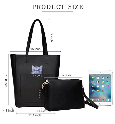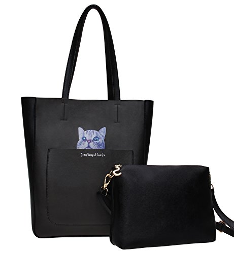 (Tom Clovers)/Accessories/Handbags/DIRECT FROM USA/Tom Clovers Womens Girls 2 Pieces Cute Cat Pattern Large Handbag Tote Bag with Purse Shoulder b...