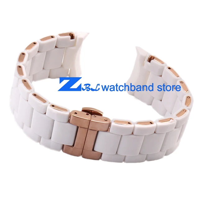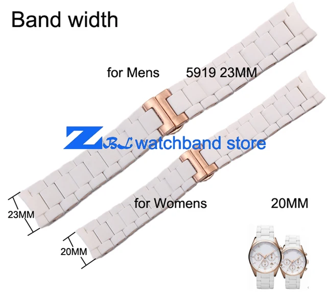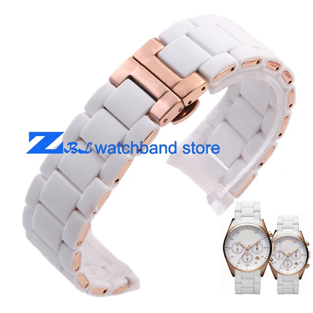 | [해외]고무 손목 시계 로즈 골드 화이트 실리카 젤 AR5919 남성 23 미리메터 AR5920 여성 20 미리메터 시계 스트랩 손목 밴드 |