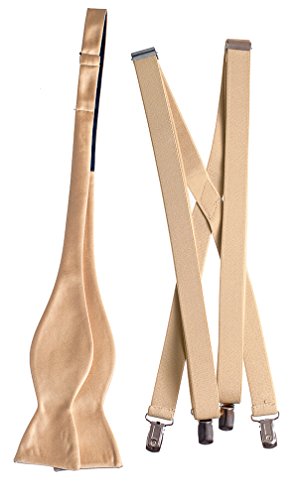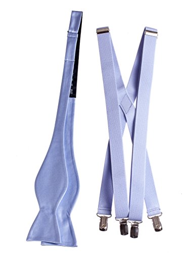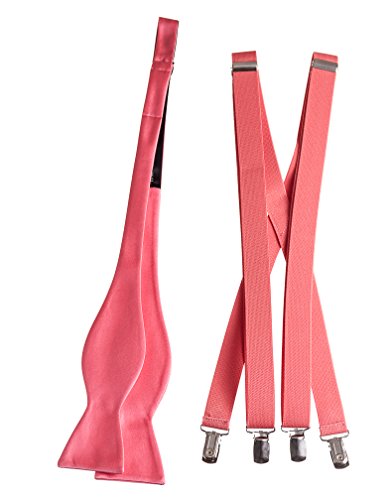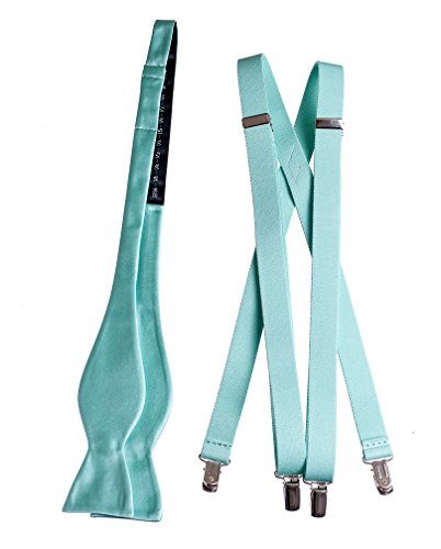 Binding : Apparel Product Description Our collection of handmade Plain Solid Self Tie Bow Ties and Suspender Sets are made of 100% polyester and elastic and can be hand washed or dry cleaned. These bow ties are equipped with a fully adjustable clasp which can be tied to fit neck sizes ranging from sizes 13.5" to 18"; while the suspenders also have an adjustable metal clip that easily slides up and down to adjust the suspender in a wide range of sizes. The Classic Designer Self Tie Bow Tie measures 2 ¼" tall and 4 ½" wide. The stylish soft elastic suspenders measure 48" long when fully lengthened for men and 40" long when fully lengthened for young men. These self tie suspender combos are available in 22 striking colors to choose from: Antique Gold, Apple Green, Apple Red, Berry, Black, Burgundy, Coral Reef, Glacier Blue, Forest Green, Jade, Lavender, Light Blue, Light Pink, Mandarin, Mint, Navy Blue, Royal Blue, Red, Silver, Turquoise, Watermelon and White . The self bow tie and suspender combo works great for church, dance performance, prom, school dances, weddings or any other formal event. Our self bow tie and suspender sets have been paired with matching colored suspenders to bring forth that new modern look of today's generation. 0