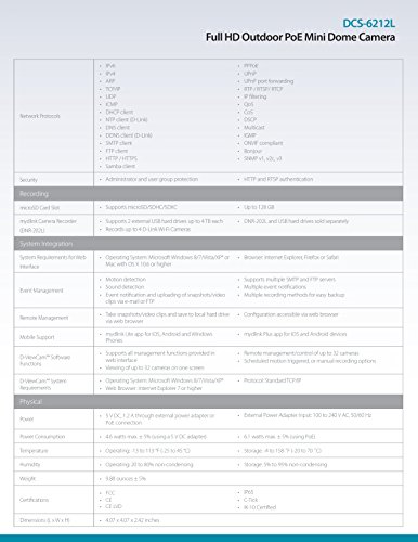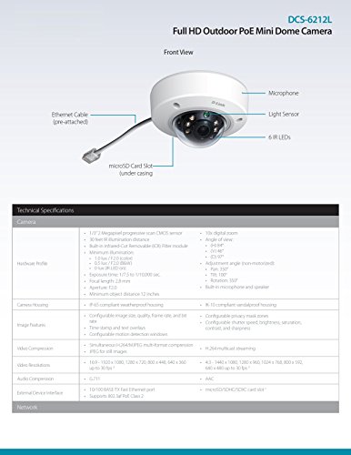 -. Title : D-Link Full HD Outdoor PoE Mini Dome Camera, White/Black (DCS-6212L)