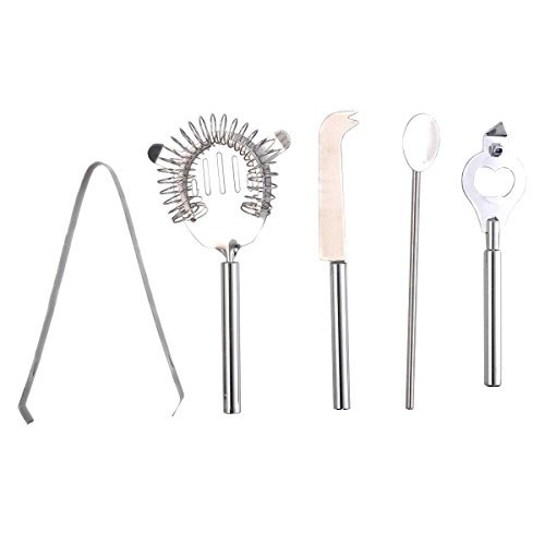 -. Title : Safstar 8 PCs Stainless Steel Cocktail Bartender Bar Set Kit, Mixer Bundle Drink Martini Tools, Shaker Double Jigger Lemon Knife Strainer Bottle Opener Stirrer Tongs Wood Stand