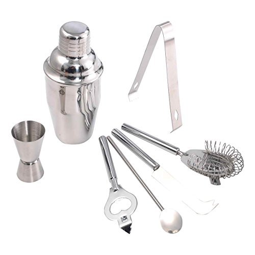 -. Feature : Great For Home Bars And Parties - With these essential tools, you'll be shaking, straining & serving like a bartender. / 8 Pieces Stainless-Steel Bar Set - Includes shaker, double jigger, strainer, bottle opener, lemon / lime slicing knife, tong, stirrer and wood stand. / Durable Stainless Steel Material - Every piece is made from stainless steel for strength, durability & easy care. / With Wood Holder For Storage - Just keep everything tucked away in the rack until it's time to make cocktails. / EASY to clean polished mirror look stainless steel martini mixer bar tool kit set.
