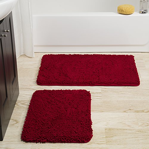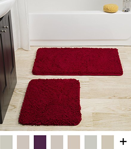 Bedford Home 2 Piece Memory Foam Shag Bath Mat Set - Burgundy