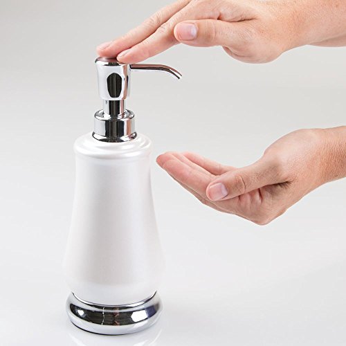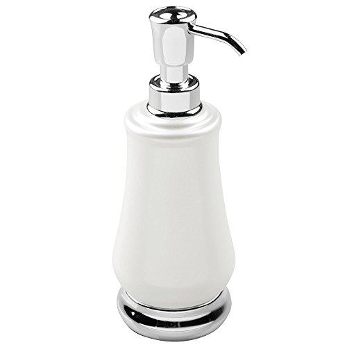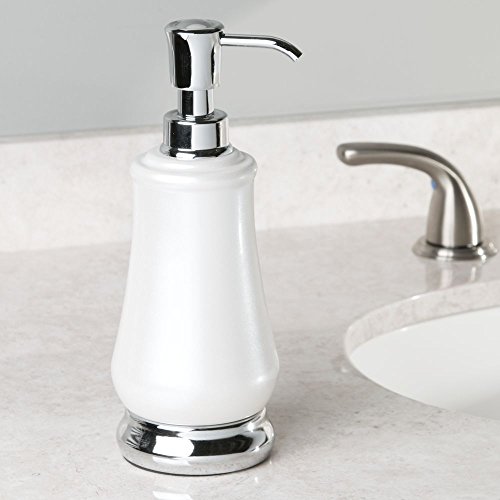 InterDesign Jacqueline Soap & Lotion Dispenser Pump for Kitchen or Bathroom Countertops, Pearl White/Chrome