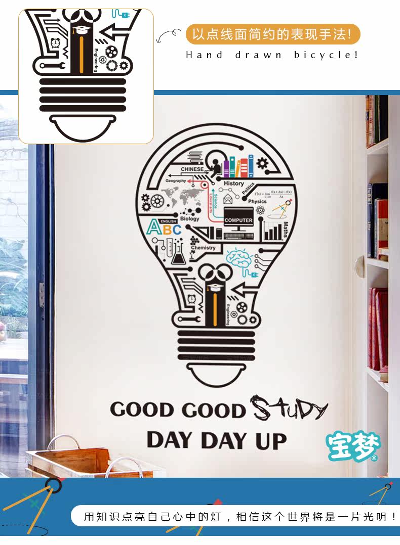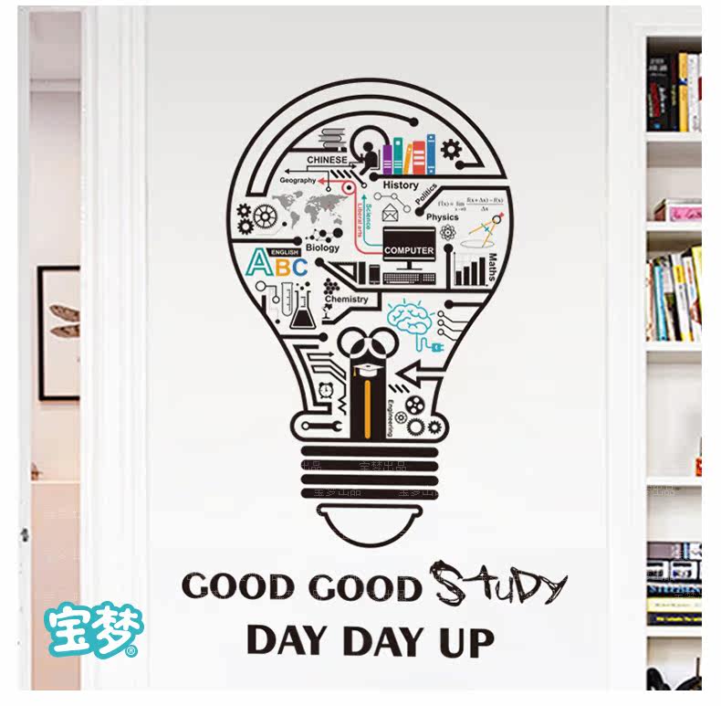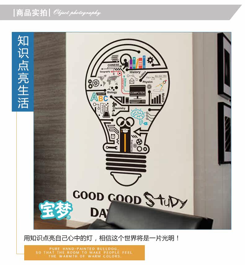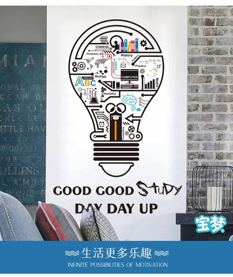 创意个性灯泡宿舍书房装饰墙贴纸简约励志公司办公室文化自粘贴画