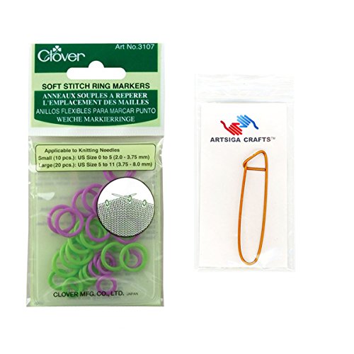 - Bundle includes 1 Clover Soft Stitch Ring Markers 30/Pkg with 1 Artsiga Crafts Stitch Holder 3107