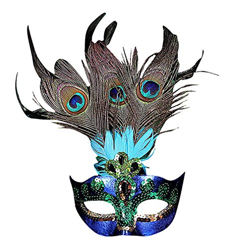 -. Title : Maze Women's Fancy Colorful PVC Sequined Eye Mask With Large Peacock Feathers